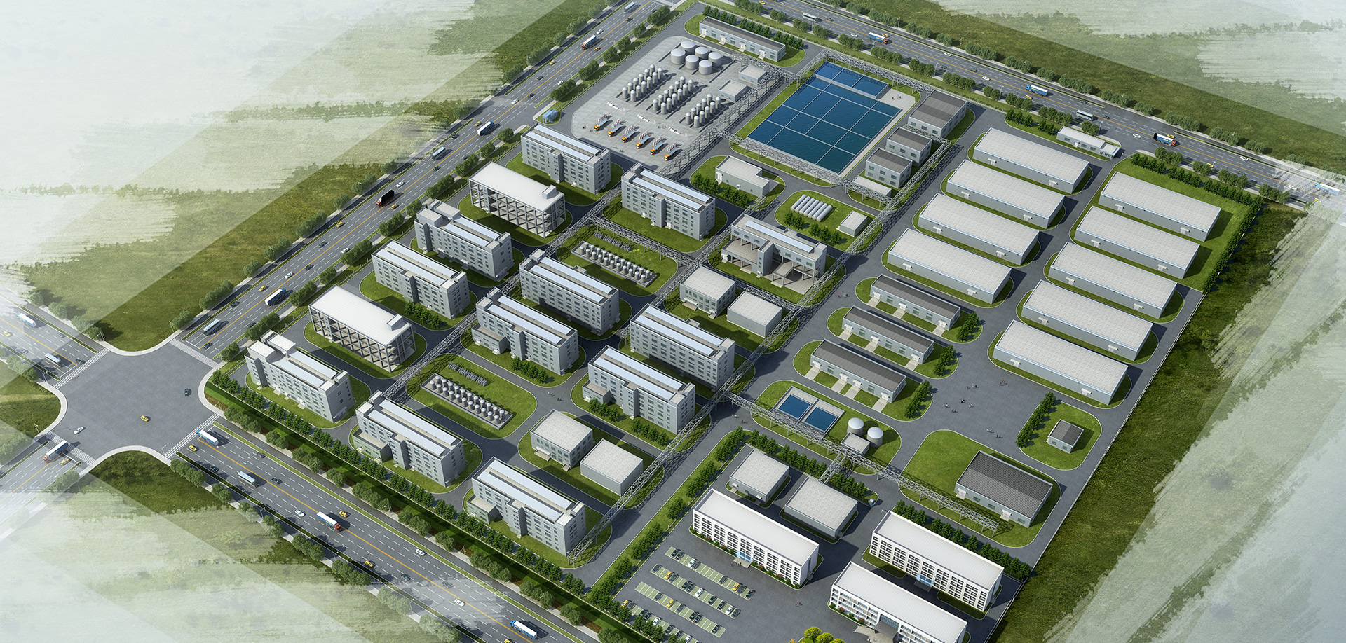 建設產品生產中心、環(huán)保處理中心、倉儲管理中心、公用工程中心、分析研究中心等區(qū)域